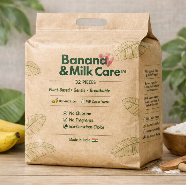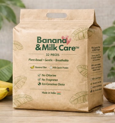 Banana & Milk Care was created to fill this gap - combining natural banana fibers and milk casein protein to deliver gentle, skin-friendly protection while reducing environmental impact. We believe parents should never have to choose between their baby’s comfort and the planet’s future.